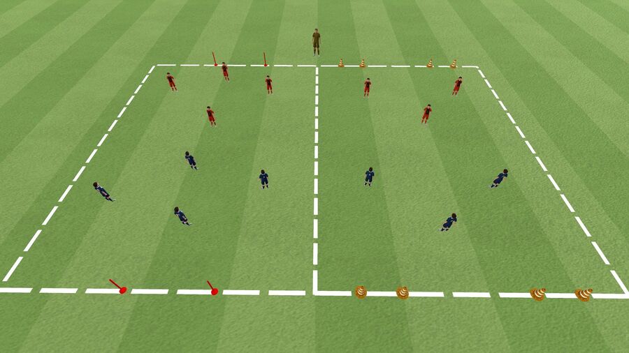 Unsere Mustertrainingseinheit Nr. 3 setzt auf Spiele in verschiedenen Feldformen. Sie kommt ohne Tore mit Netzen aus, weil sie nicht jeder Trainer zur Verfügung hat. Dafür sind die Stangentore und Hütchentore leicht zu verschieben und zu vergrößern. Flexibel werden alle Bausteine des Kinderfußballs mit dem 2-Felder-Prinzip ganzheitlich und mit viel Spielspaß trainiert - weit überwiegend in kleinen Spielformen.