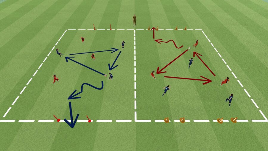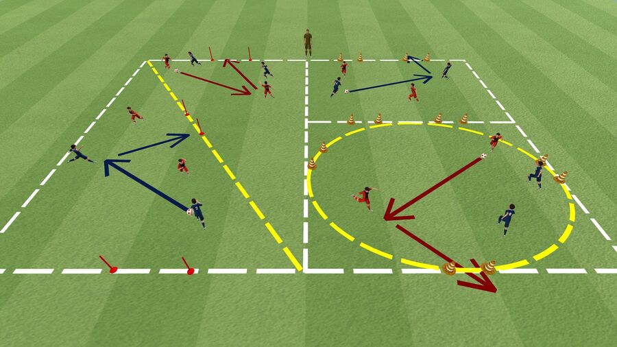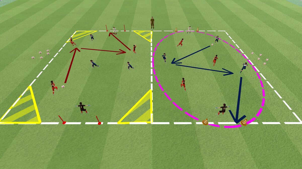Unsere Mustertrainingseinheit Nr. 3 setzt auf Spiele in verschiedenen Feldformen. Sie kommt ohne Tore mit Netzen aus, weil sie nicht jeder Trainer zur Verfügung hat. Dafür sind die Stangentore und Hütchentore leicht zu verschieben und zu vergrößern. Flexibe...