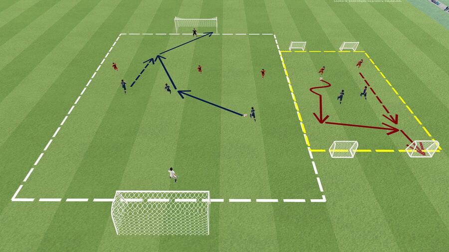 Im Fußballtraining wird oft mit allen Kindern in einem Feld trainiert. Mit dem 2-Felder-Prinzip zeigen wir euch einen Gegenentwurf und erklären, wie Trainer mit großen Gruppen alleine trainieren können.